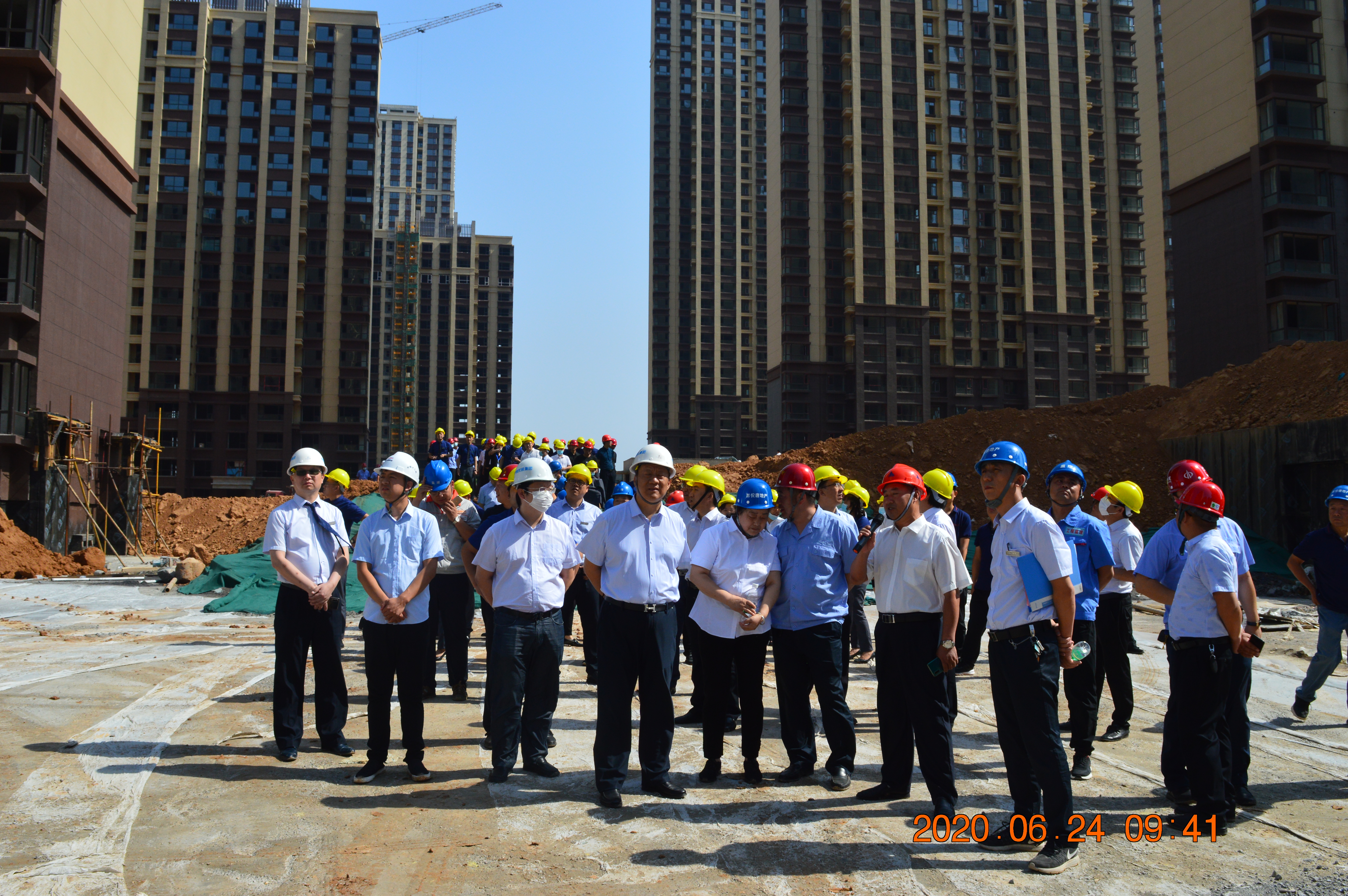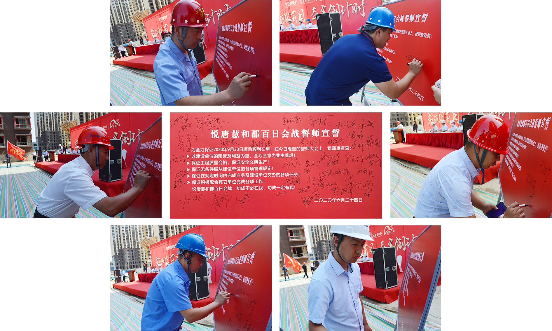 誓師戰(zhàn)百日,交房倒計時!為全力保證項目交房任務(wù)圓滿完成,嚴(yán)格兌現(xiàn)向廣大業(yè)主的承諾,2020年6月24日上午,山西悅唐房地產(chǎn)開發(fā)有限公司組織進行“施工現(xiàn)場觀摩檢查暨工程百日會戰(zhàn)誓師大會”。中維控股集團董事長郭秀忠先生、總裁郭雅磊先生,悅唐地產(chǎn)執(zhí)行總經(jīng)理郭改花女士、總工程師張強先生,以及項目各總包、監(jiān)理、分包單位負責(zé)人等主要領(lǐng)導(dǎo),中維控股集團、各參建單位員工代表參與本次活動。
