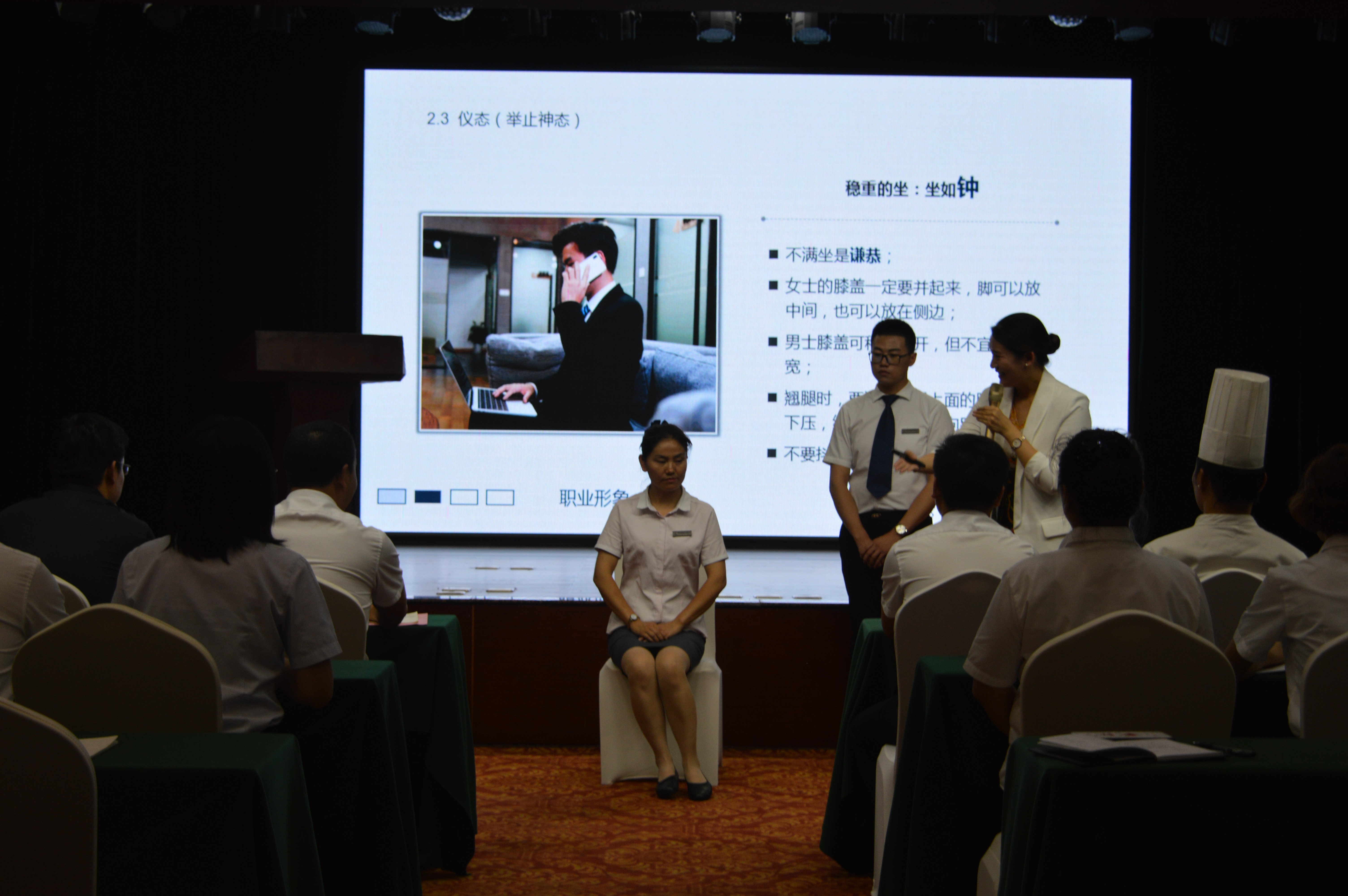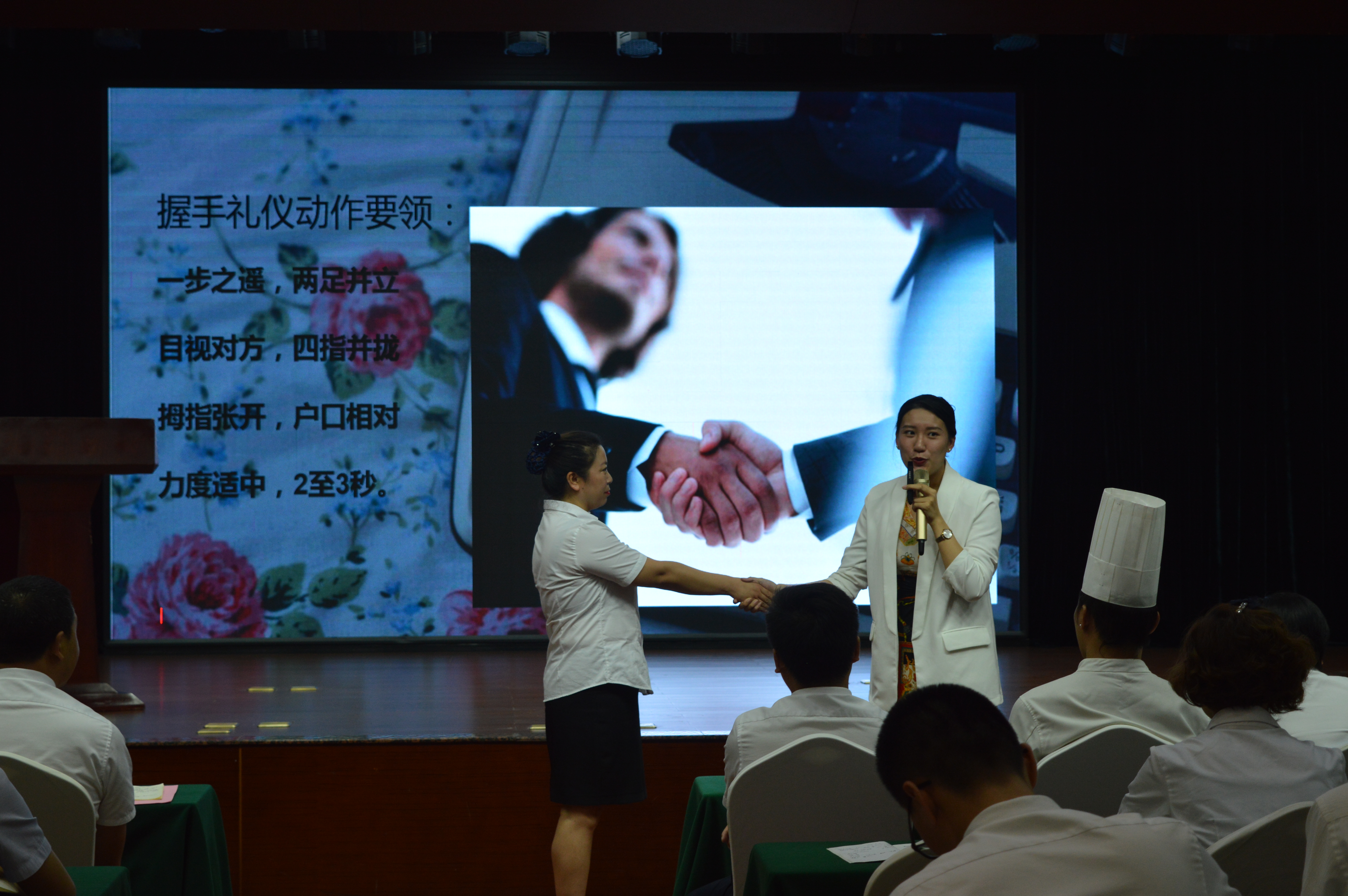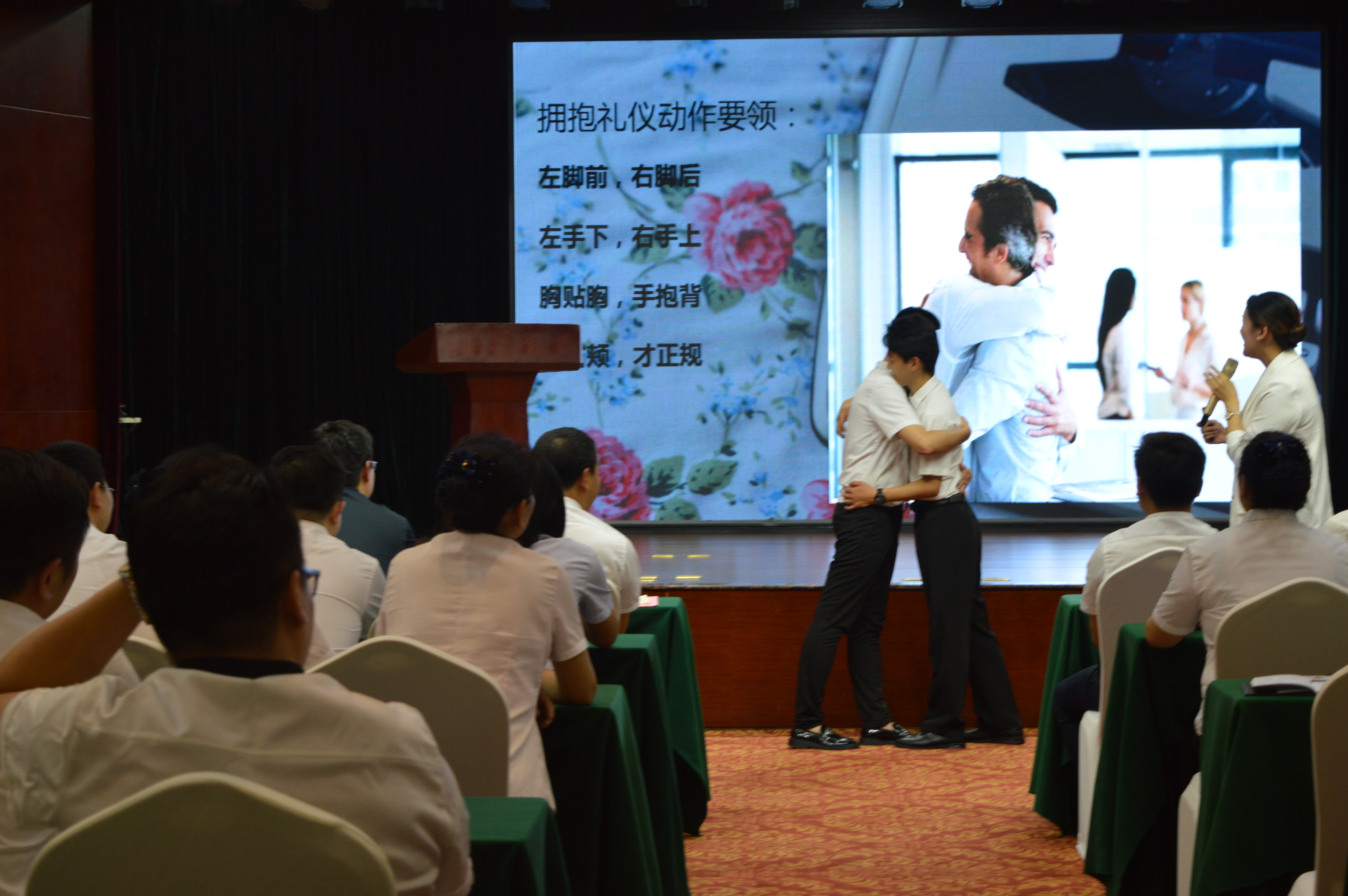 嘉賓曹老師為大家進行了精彩而生動的服務禮儀培訓,曹老師從日常的儀表、站姿、坐姿、行走、擁抱、握手、鞠躬等禮儀規(guī)范方面,邀請現場員工互動參與并示范講解,另外通過案例與影片分享,闡釋了服務美學的重要意義,以及如何從基本的服務到滿意的服務再到感動的服務?,F場教學氛圍活躍,精彩處引發(fā)陣陣掌聲。