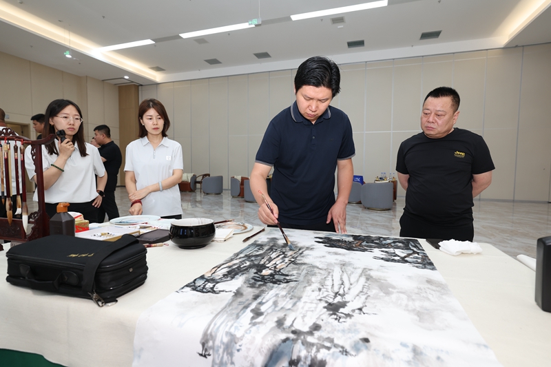 湖南省衡陽市書畫院資深書畫家郭健大師、山西大學(xué)美術(shù)學(xué)院常瀟教授等書畫名家現(xiàn)場潑墨,以精湛技藝點亮藝術(shù)空間。
